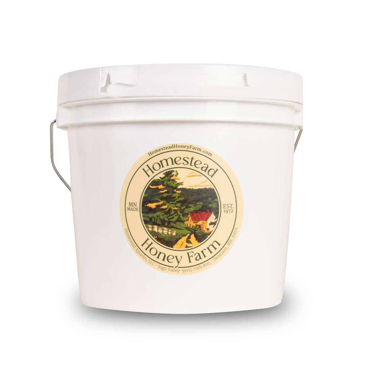 Try our new 12# pail, fresh from the harvest! This is our unique velvety blonde honey that remains spreadable as it sugars, our most popular honey. Our Grade-A Fancy, Raw Honey has never been heated, so it carries the natural enzymes and properties just the way the bees made it. We strive to keep our honey in its natural state. This 12# pail of raw honey is definitely a crowd pleaser!